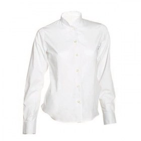 Camisa señora entallada manga larga cuello mao sin bolsillo. Composición: 65%poliéster, 35% algodón.