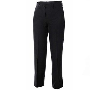 Pantalón de señora sin bolsillos laterales, bolsillo cerillero, caja baja y trabillas. Composición: 100% poliéster.