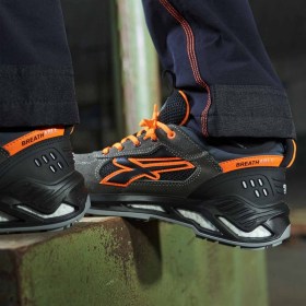 Protegido en todo momento gracias a la puntera AirToe Aluminio perforado, para una mejor transpiración del pie, resistente a 200J y a la entre suela anti perforación Save&FlexPlus en tejido que garantiza protección sobre el 100% de la superficie plantar, ¡ fresca y seca !